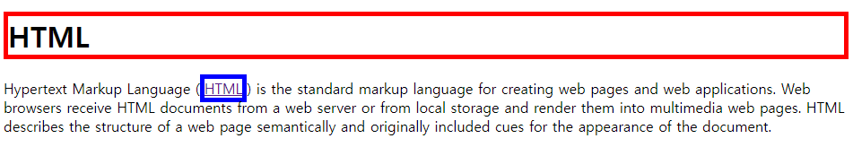 a는 inline element로 좁은 부피를 차지한다. (blue)